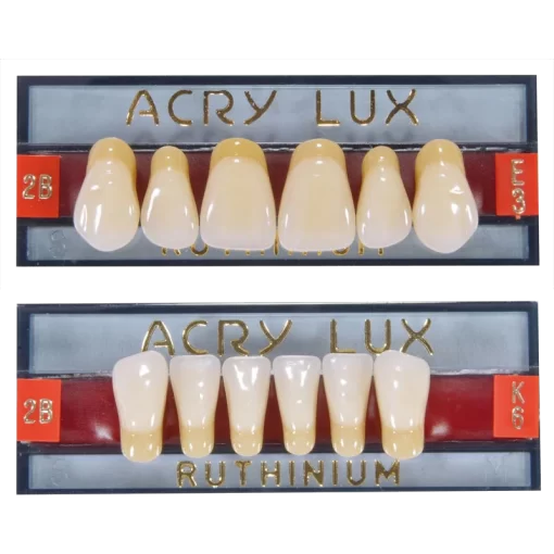 Denti artificiali in polimetilmetacrilato realizzati in tre strati cromatici.