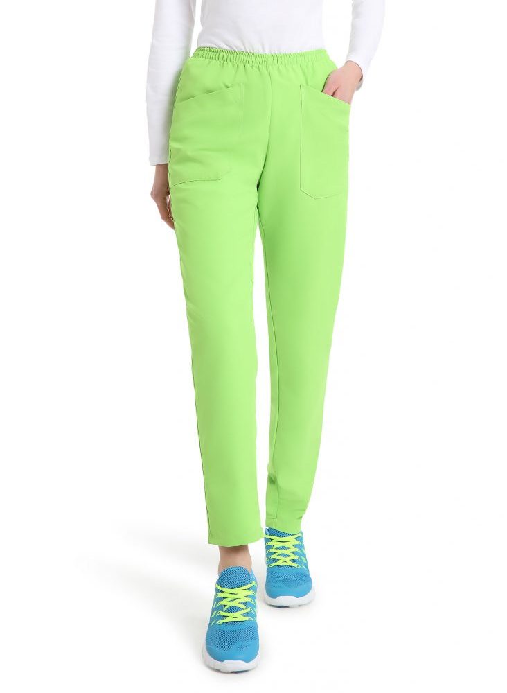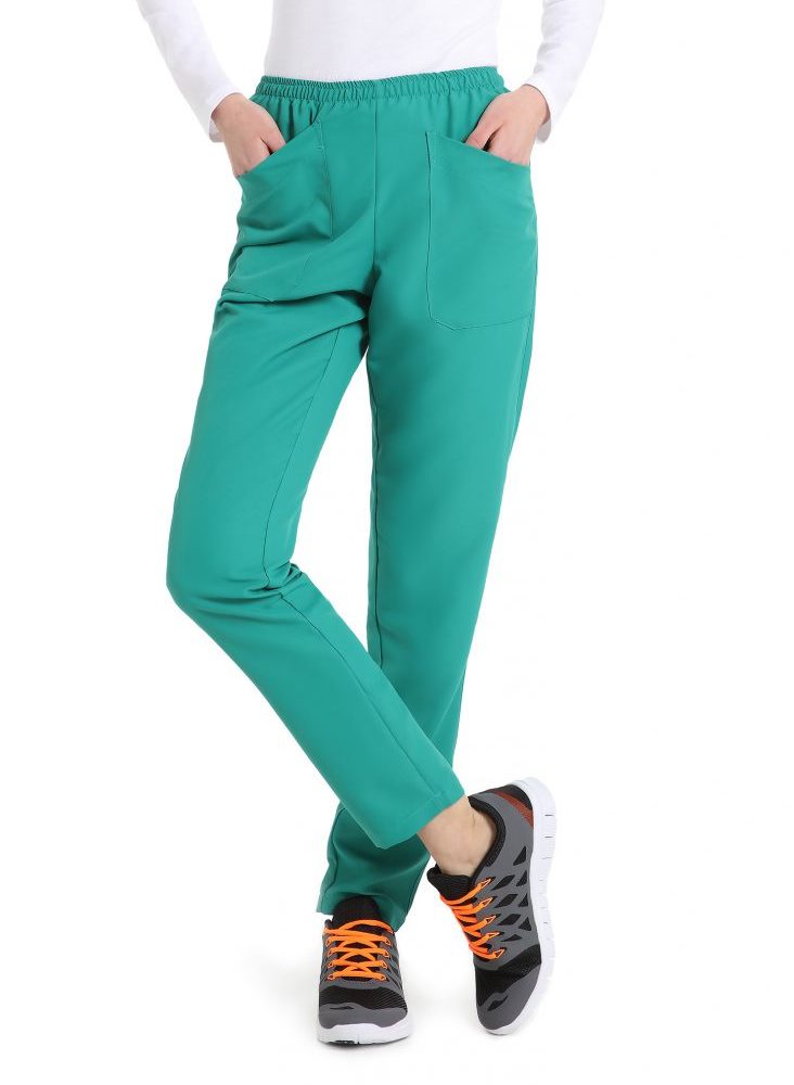 Leggero e comodo con elastico in vita e ampie tasche frontali applicate. È pensato per unire stile e versatilità, per tutta la giornata lavorativa.