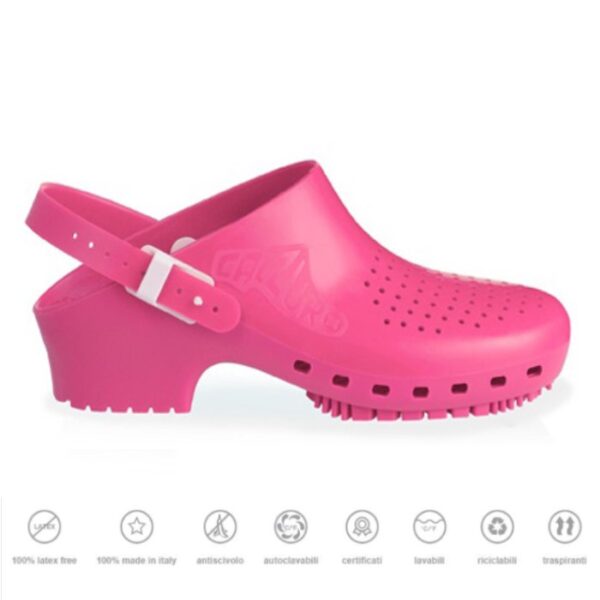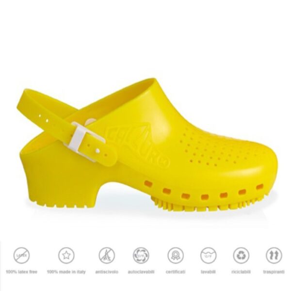 Lo zoccolo del marchio Calzuro è Latex Free, antistatico, antiscivolo e autoclavabile fino a 134° C, ideale quindi per tutti quei lavori in cui viene richiesta una calzatura professionale sterilizzabile.